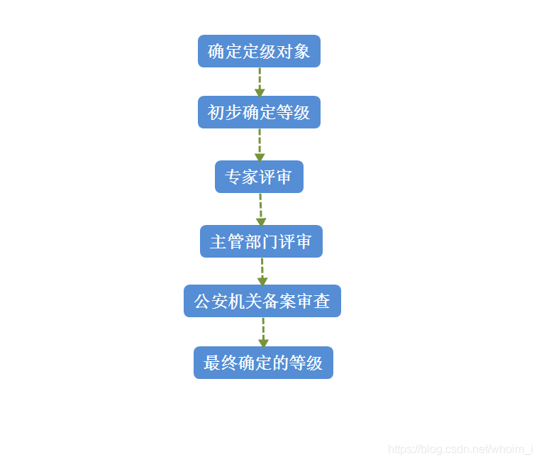定級工作的主要內(nèi)容包括:確定定級對象、初步確定等級、組織專家評審、主管部門審核、公安機(jī)關(guān)備案審查、最終確定等級。其流程圖如下: